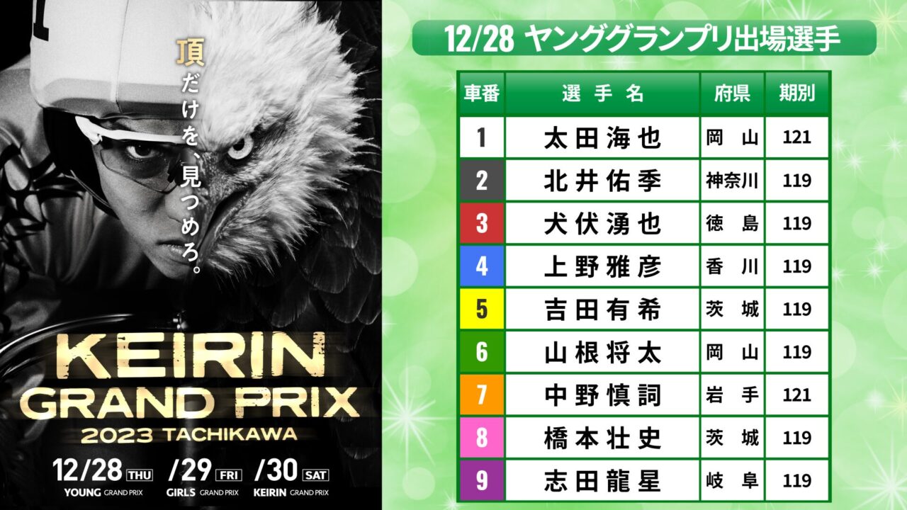 18日、12月28日に立川競輪場で行われる「ヤンググランプリ」の想定番組が発表された。