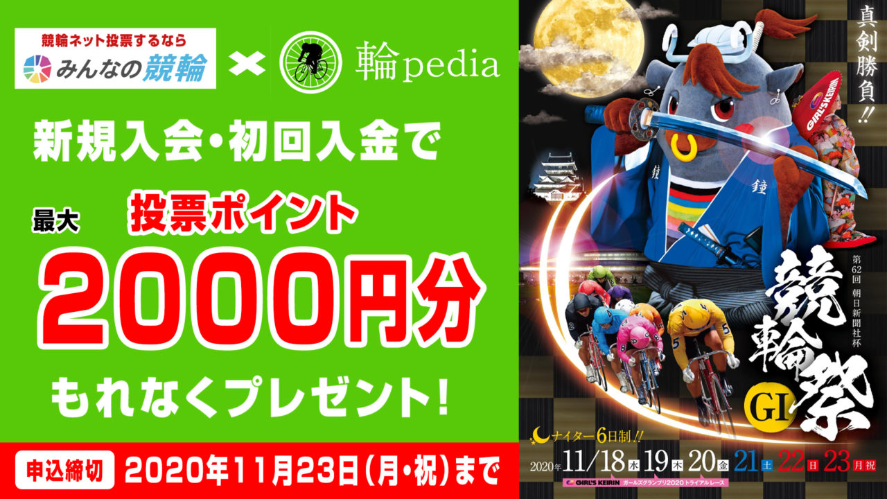 今回は「みんなの競輪」で競輪祭開催期間中に実施されるキャンペーンについてお伝えしました!「輪pedia」経由での登録なら、新規入会で最大2,000円分のポイントをプレゼント!