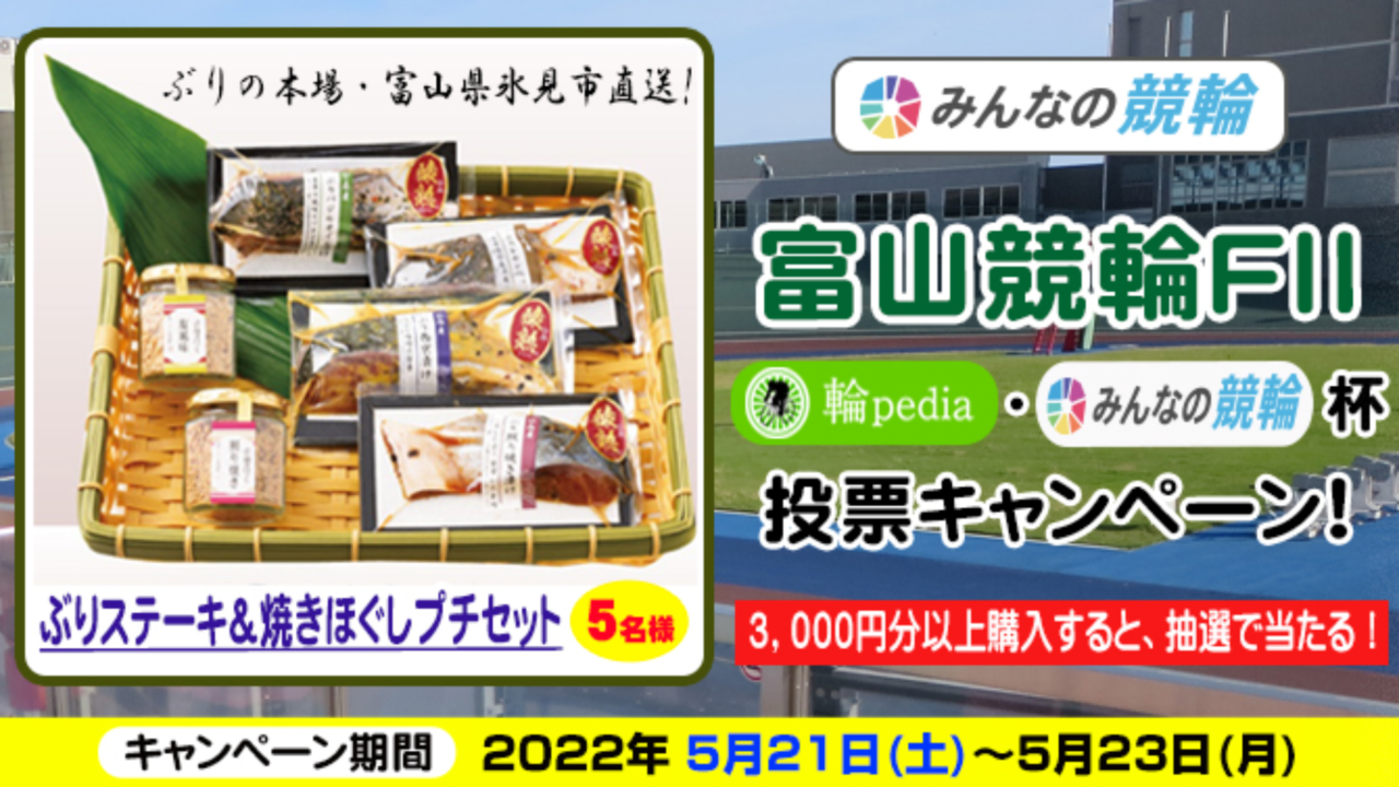 「みんなの競輪」では、ぶりの本場・富山県氷見市直送!「ぶりステーキ&焼きほぐしプチセット」が当たる投票キャンペーンを実施!