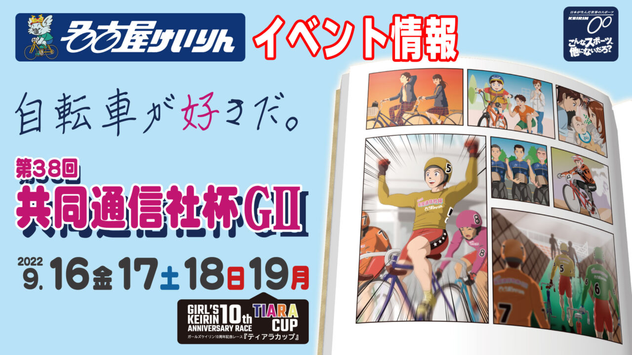 9月16日(金)~9月19日(祝・月)に、名古屋競輪場で「第38回共同通信社杯G2」が開催されます。今回は、「共同通信社杯G2」開催期間中に開催されるイベント・キャンペーンについてお知らせします!